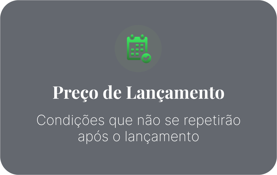 Um número limitado de unidades promocionais será liberado com as melhores condições de parcelamento do mercado. Cadastre-se agora e tenha acesso prioritário.